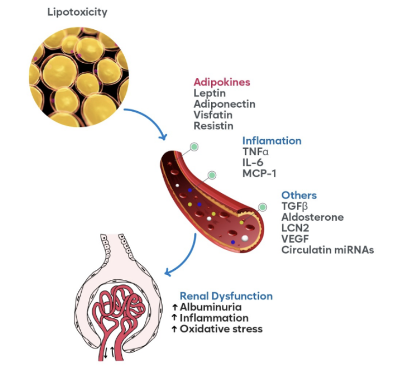 Chronic kidney disease (CKD) is a significant public health problem worldwide. The average prevalence worldwide in 2021 was between 11 and 13%, and the mortality associated with CKD is high. It is estimated that By 2040, it will be the fifth cause of death due to all pathologies. One of the risk factors for CKD is obesity, in addition to the classic entities known as diabetes mellitus (DM) and high blood pressure (HTN).
